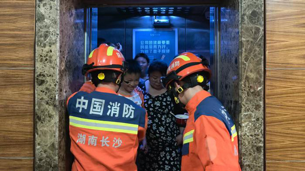 8 月 18 日晚 22 時 36 分,芙蓉區英尚國際大廈突發電梯故障,3 號、4 號電梯先后停運,致使 28 名市民被困。芙蓉區消防救援大隊五一廣場消防站接警后,火速趕赴現場。