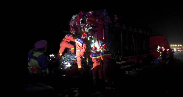 生死營救!青銀高速深夜三車連撞,鄒平消防破拆救出兩名被困司機