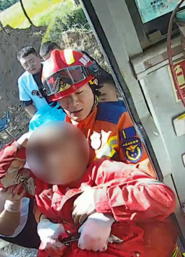 在救援過程中,消防人員憑借著精湛的技藝和默契的配合,克服重重困難,分秒必爭地為被困司機爭取生機。經過一番緊張而有序的救援操作,終于成功將被困司機移出駕駛室,并小心翼翼地將其抬上擔架,交由現場等候的 120 醫護人員送往醫院進行進一步救治。
