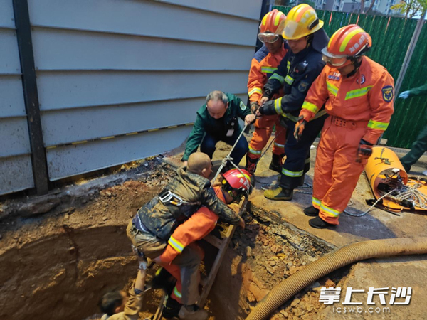 工人不慎墜入6米深下水道且受傷嚴(yán)重 寧鄉(xiāng)消防緊急救援 渾濁泥水中背出傷者
